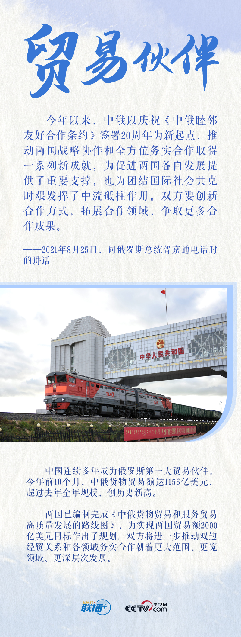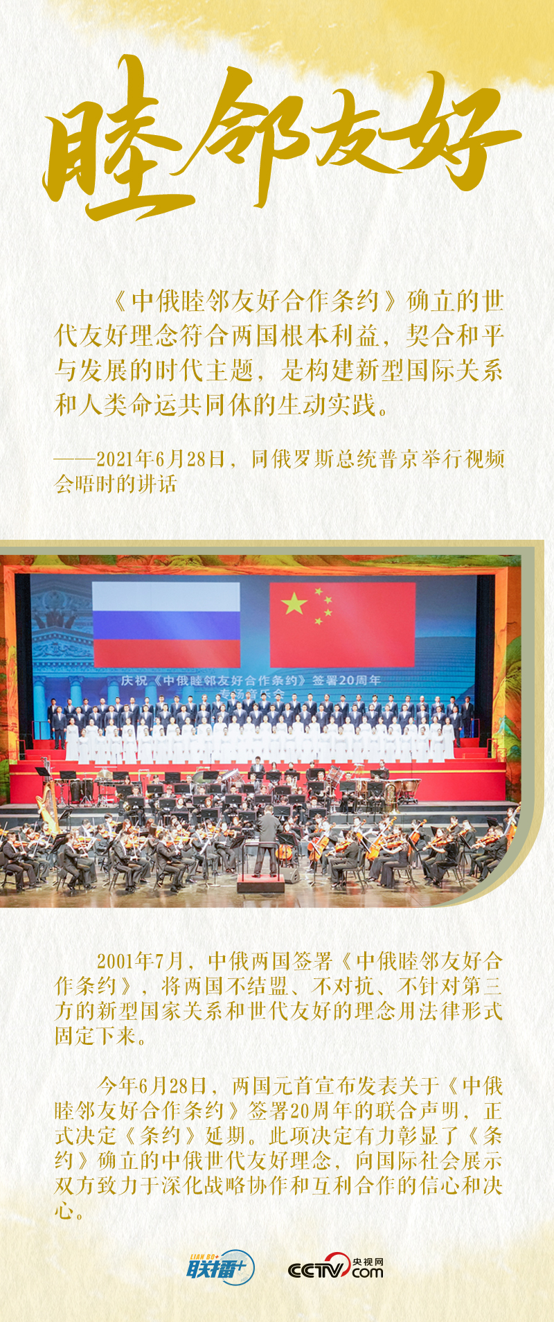 值此中俄“背靠背”战略协作和全方位务实合作蓬勃发展之际,央视网《联播+》特梳理习近平主席关于中俄关系发展的重要论述,与您一起学习。